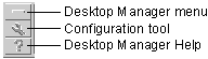 Click on this button to bring up the Desktop Manager menu, which lets you run applications from a command line and control the behavior of the Desktop Manager.